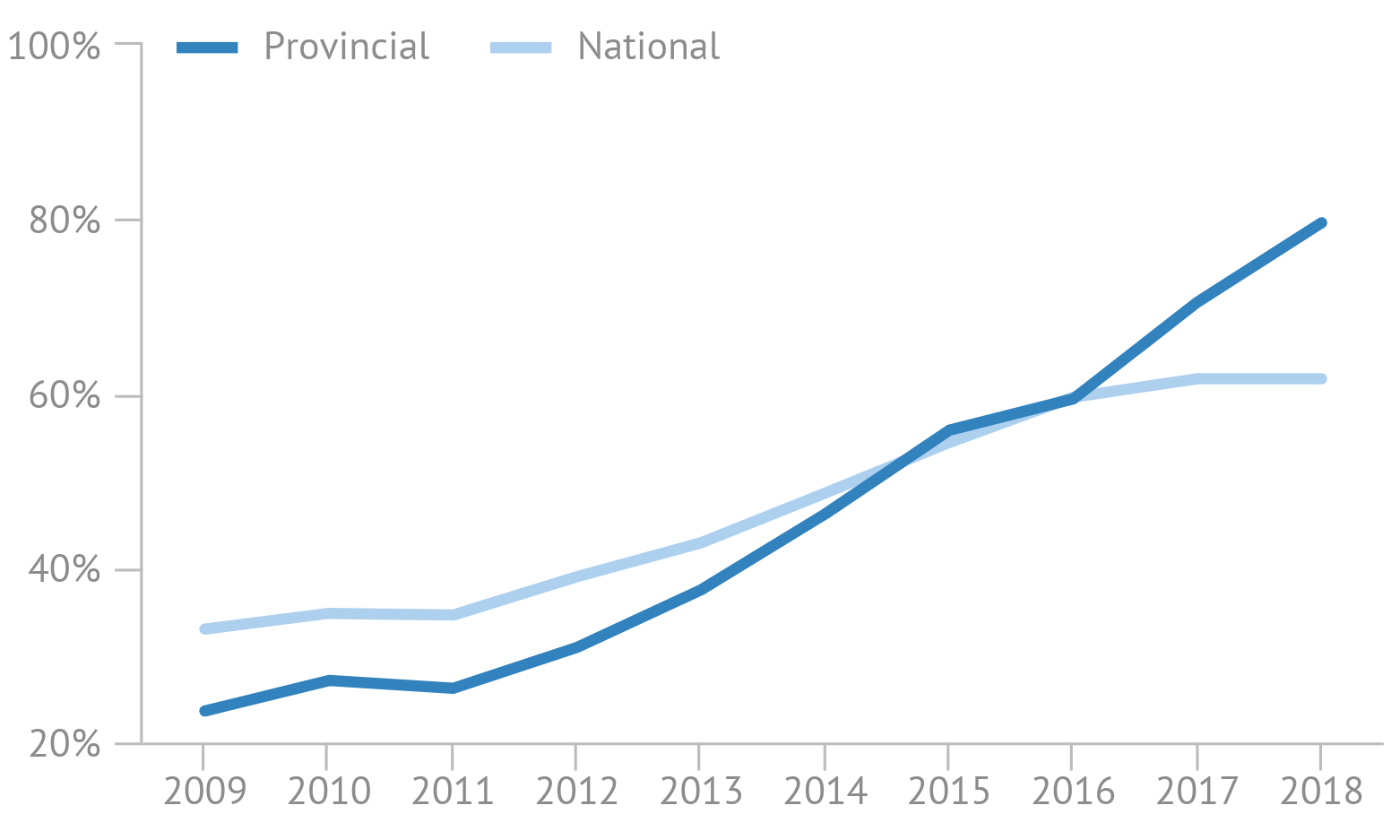 Provincial LGFV Debt as % of GDP Vs. National 2009 - 2018